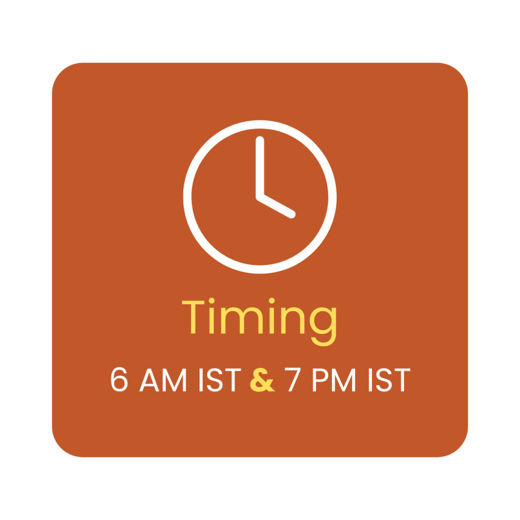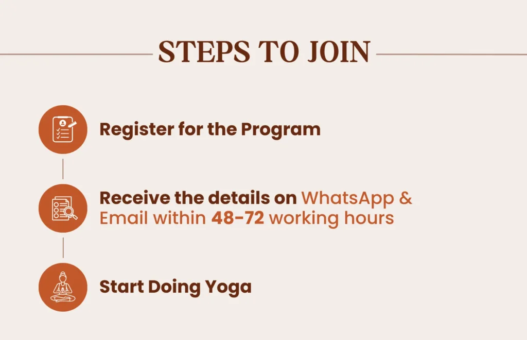 You will receive 4 live yoga sessions and 1 catch-up session every week. Choose from two convenient time slots: 6–7 AM or 7–8 PM IST. If you miss a session, recorded classes are available.