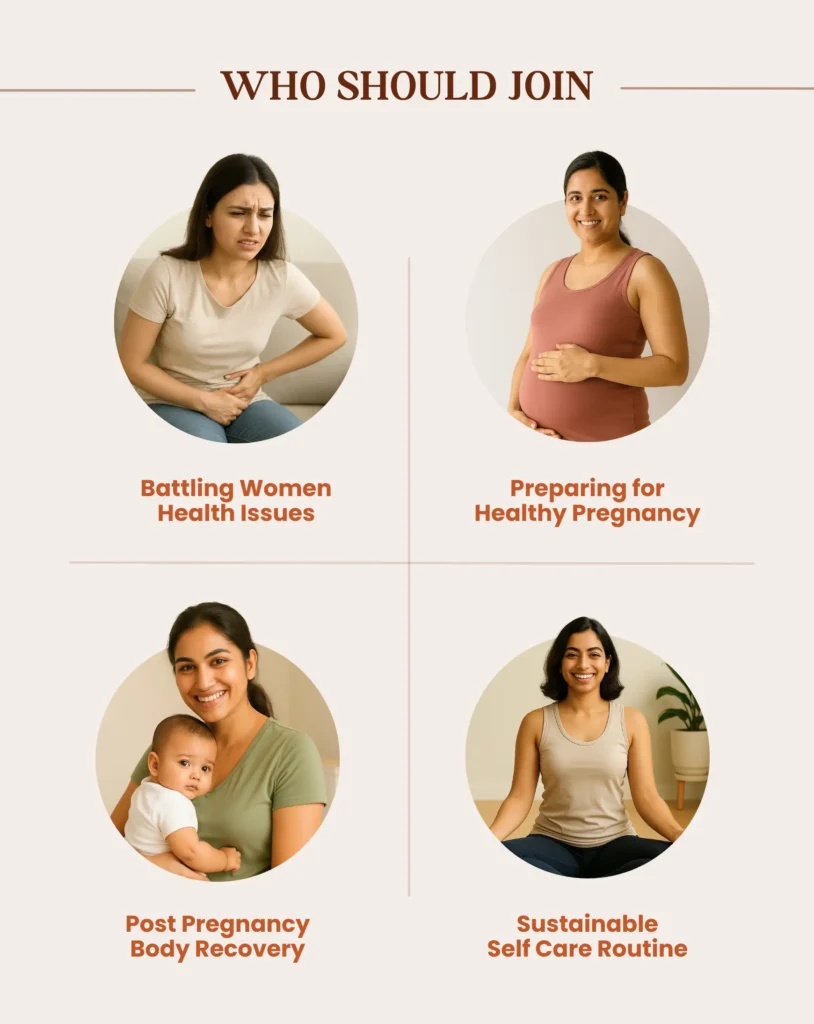 This program is open to all women—beginners and experienced alike. Whether you’re currently facing health issues or aiming for prevention, the program promotes overall well-being.